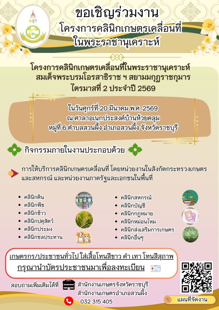 ขอเชิญร่วมงานโครงการคลินิกเกษตรเคลื่อนที่ในพระราชานุเคราะห์ฯ ไตรมาสที่ 2 ประจำปี 2569By admin_doae / 18 มีนาคม 2026