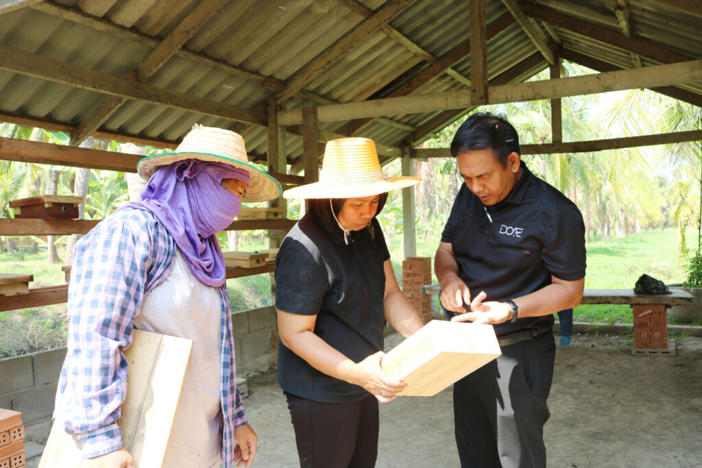 วันที่ 26 เดือนมีนาคม พ.ศ. 2569 นายสุพัฒน์ อ่อนคง เกษตรจังหวัดราชบุรี พร้อมด้วยนางเครือวัลย์ นักวิชาการส่งเสริมการเกษตรปฏิบัติการ สำนักงานเกษตรอำเภอโพธาราม และเจ้าหน้าที่สำนักงานเกษตรอำเภอ ติดตามความก้าวหน้าธนาคารชันโรงเพื่อการเกษตรสีเขียว ทั้งนี้ได้ทำการแยกรังชันโรงที่สมบูรณ์เพื่อเพิ่มปริมาณชั้นโรงให้มากขึ้น โดยมีนางสาวปุญญาสา ประชุมศรี เกษตรกรผู้เลี้ยงชันโรง ให้การต้อนรับ ณ ธนาคารชันโรงเพื่อการเกษตรสีเขียว หมู่ที่ 5 ตำบลบางโตนด อำเภอโพธาราม จังหวัดราชบุรี
