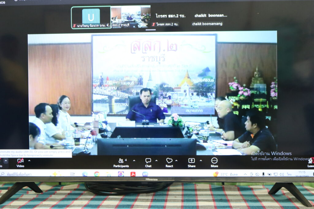 วันที่ 21 เดือนเมษายน พ.ศ. 2569 นายสุพัฒน์ อ่อนคง เกษตรจังหวัดราชบุรี กล่าวต้อนรับคณะกรรมการคัดเลือกอาสาสมัครเกษตรหมู่บ้าน (อกม.) ต้นแบบ ระดับประเทศ ผ่านระบบ Zoom Meeting โดยมีนายประสาน ปานคง ผู้อำนวยการสำนักงานส่งเสริมและพัฒนาการเกษตรที่ 2 จังหวัดราชบุรี ประธานคณะกรรมการ นายสุทธิพงษ์ พุทธจันทรา ปลัดจังหวัดราชบุรี นายอดุลย์ ถาวรกุล นายอำเภอเมืองราชบุรี กล่าวสนับสนุน นายวิษณุ นิ่มนวล อาสาสมัครเกษตรหมู่บ้าน (อกม.) ให้ข้อมูล ณ กลุ่มวิสาหกิจชุมชนบ้านล้อมรักษ์ บ้านหนองกระทุ่ม ตำบลหินกอง อำเภอเมืองราชบุรี จังหวัดราชบุรี