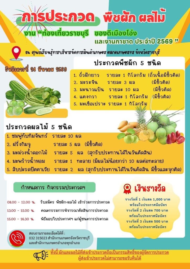 ขอเชิญเกษตรกรร่วมส่งผลผลิตเข้าประกวด ในงาน “ท่องเที่ยวราชบุรีของดีเมืองโอ่ง และงานกาชาด ประจำปี 2569”By admin_doae / 11 มีนาคม 2026