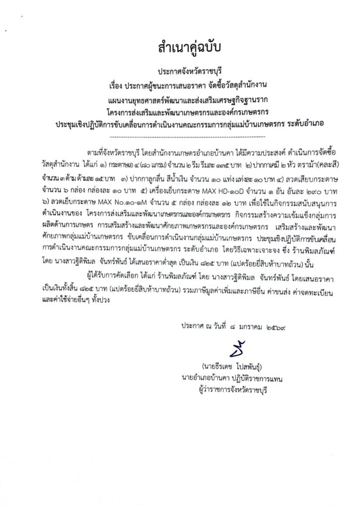 ประกาศผู้ชนะการเสนอราคา จัดซื้อจัดจ้างวัสดุสำนักงาน แผนงานยุทธศาสตร์พัฒนาและส่งเสริมเศรษฐกิจฐานราก โครงการส่งเสริมและพัฒนาเกษตรกรและองค์กรเกษตรกรฯBy adminbankha / 6 มีนาคม 2026