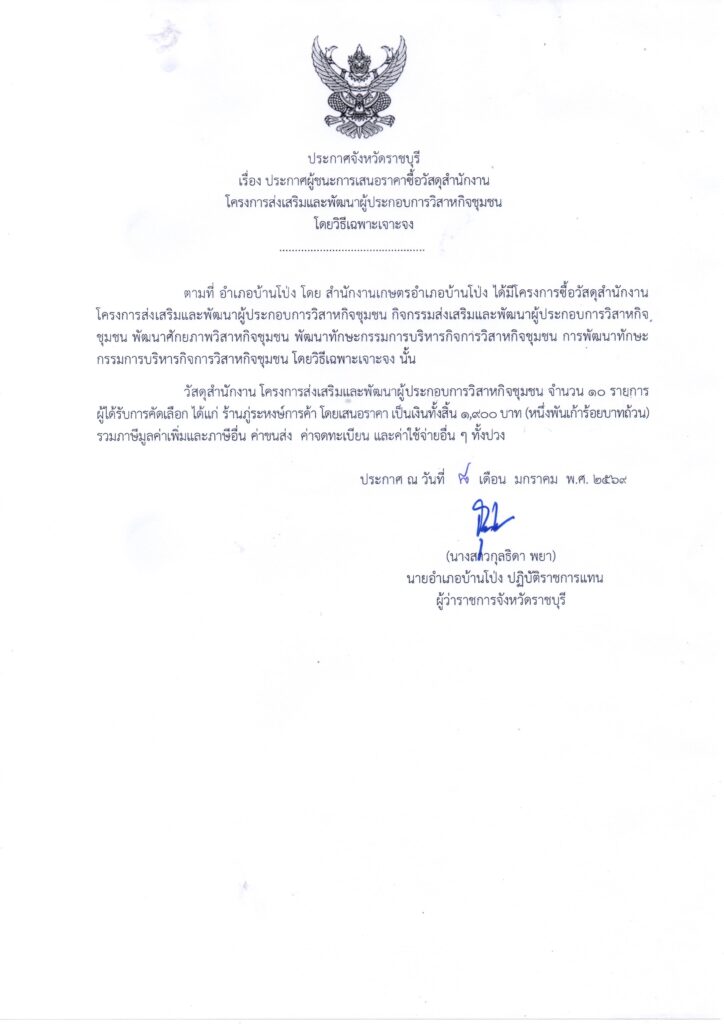 ประกาศผู้ชนะการเสนอราคาซื้อวัสดุสำนักงาน โครงการส่งเสริมและพัฒนาผู้ประกอบการวิสาหกิจชุมชน โดยวิธีเฉพาะเจาะจงBy adminbanpong / 27 กุมภาพันธ์ 2026