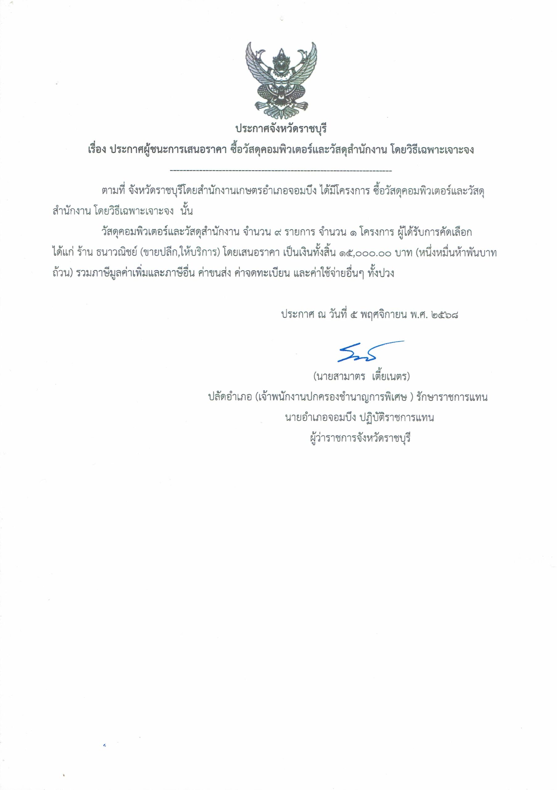 ประกาศผู้ชนะการเสนอราคาซื้อวัสดุคอมพิวเตอร์และวัสดุสำนักงาน โดยวิธีเฉพาะเจาะจงBy admin_doae / 5 พฤศจิกายน 2025 CCI11112568
