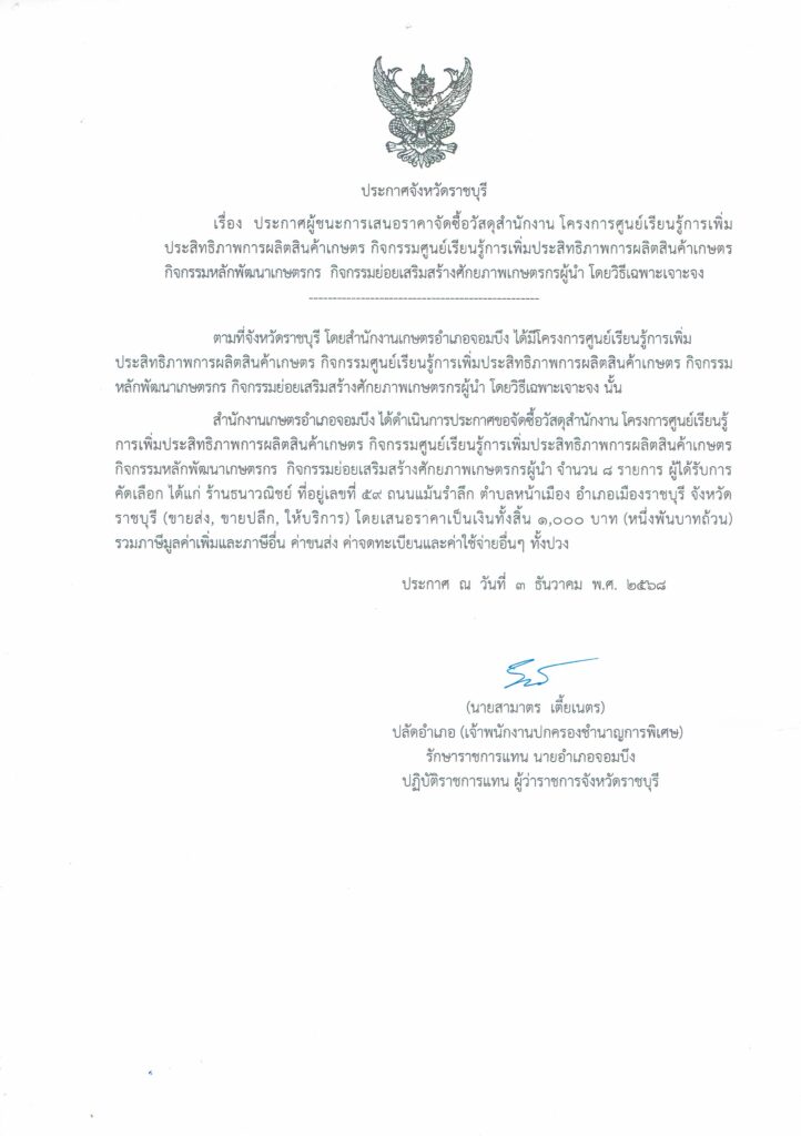 ประกาศผู้ชนะการเสนอราคาจัดซื้อวัสดุสำนักงานโครงการศูนย์เรียนรู้การเพิ่มประสิทธิภาพการผลิตสินค้าเกษตร กิจกรรมย่อยเสริมสร้างศักยภาพเกษตรกรผู้นำ โดยวิธีเฉพาะเจาะจงBy adminchombueng / 3 ธันวาคม 2025