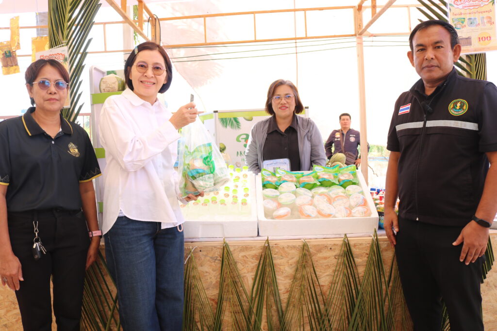 วันที่ 29 เดือนพฤศจิกายน พ.ศ. 2568 นายสุพัฒน์ อ่อนคง เกษตรจังหวัดราชบุรี พร้อมด้วยนางสาวอัมพร ถาวรกสิอนันต์ เกษตรอำเภอดำเนินสะดวก ให้การต้อนรับนางสาวฐิติลักษณ์ คำพา ผู้ว่าราชการจังหวัดราชบุรี เยี่ยมชมงานประชาสัมพันธ์มะพร้าวน้ำหอมของดีจังหวัดราชบุรี เพื่อเป็นขวัญและกำลังใจให้กับเกษตรกรที่มาร่วมจำหน่ายสินค้า ในงาน ซึ่งจัดขึ้นในระหว่างวันที่ 28-30 พฤศจิกายน 2568 ณ ศูนย์จำหน่ายสินค้าเกษตรจังหวัดราชบุรี ตำบลวัดแก้ว อำเภอบางแพ จังหวัดราชบุรี ทั้งนี้ได้ให้กำลังใจแก่ผู้เข้าร่วมการแข่งขันประกอบอาหารคาวจากมะพร้าวน้ำหอม มีผู้เข้าร่วมแข่งขัน จำนวน 7 ทีม จากอำเภอต่าง ๆ ในจังหวัดราชบุรี