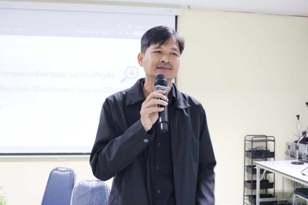 วันที่ 12 เดือนธันวาคม พ.ศ. 2568 นายสุพัฒน์ อ่อนคง เกษตรจังหวัดราชบุรี เปิดการอบรมหลักสูตรการพัฒนาเกษตรกรผู้สำรวจแปลงติดตามสถานการณ์ศัตรูพืช หัวหน้า การสำรวจติดตามสถานการณ์ศัตรูพืชในพื้นที่เสี่ยงที่ปลูกพืชเศรษฐกิจ และการใช้สารเคมีอย่างถูกต้องและปลอดภัย โดยมีนายกิตติทัต ส่องสว่าง หัวหน้ากลุ่มอารักขาพืช และเจ้าหน้าที่สำนักงานเกษตรจังหวัด สำนักงานเกษตรอำเภอ ร่วมอบรม ณ ห้องประชุมศูนย์เรียนรู้การบริหารจัดการสินค้าเกษตรตลาดเกษตรกรจังหวัดราชบุรี อำเภอเมืองราชบุรี จังหวัดราชบุรี