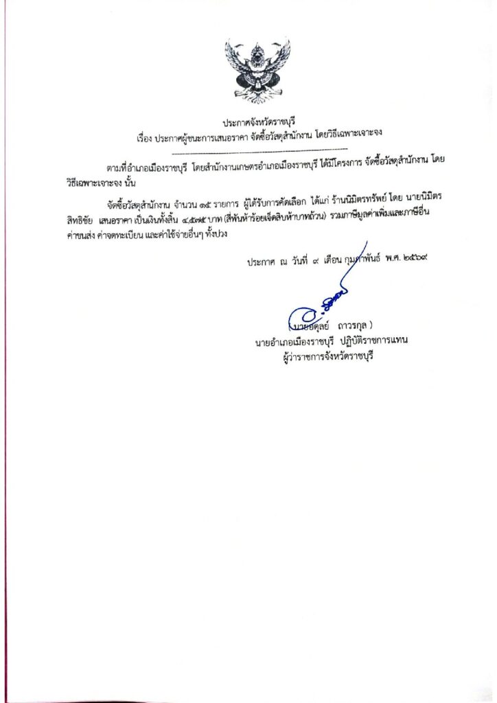 ประกาศผู้ชนะการเสนอราคาวัสดุคอมพิวเตอร์โดยวิธีเฉพาะเจาะจง