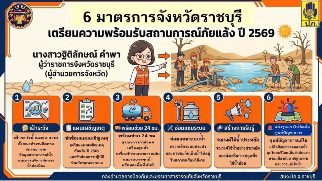 6 มาตรการจังหวัดราชบุรี เตรียมความพร้อมรับสถานการณ์ภัยแล้ง ปี 2569