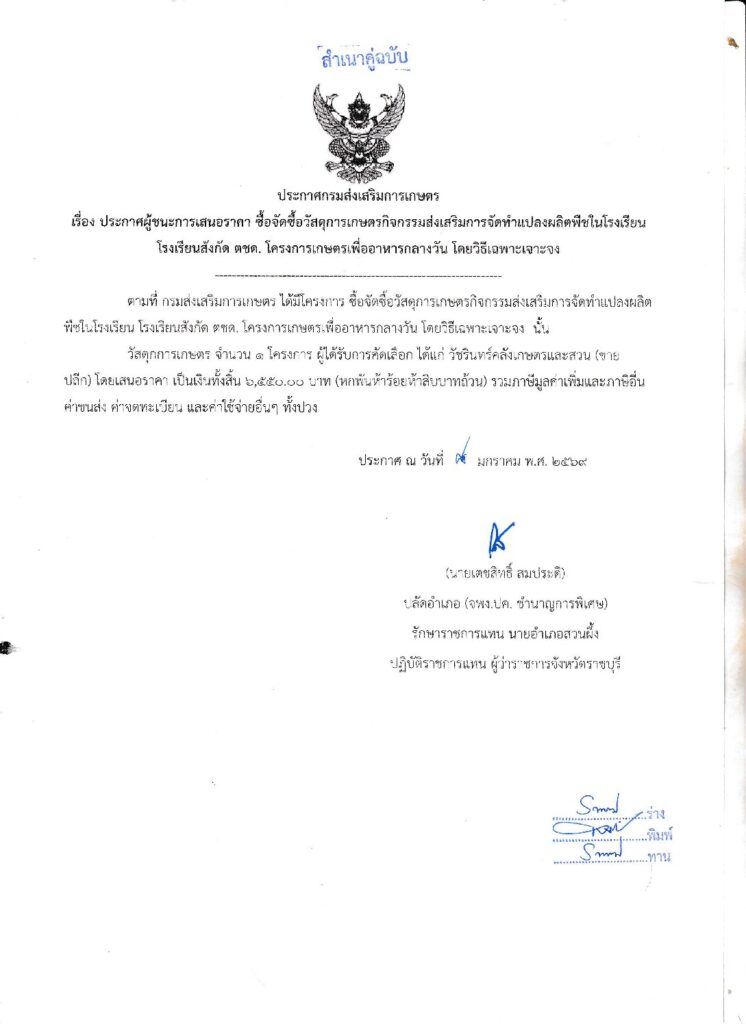 ประกาศผู้ชนะการเสนอราคาจัดซื้อวัสดุการเกษตรกิจกรรมส่งเสริมการจัดทำแปลงผลิตพืชในโรงเรียน โรงเรียนสังกัด ตชด.โครงการเกษตรเพื่ออาหารกลางวันBy adminsuanphueng / 8 มกราคม 2026