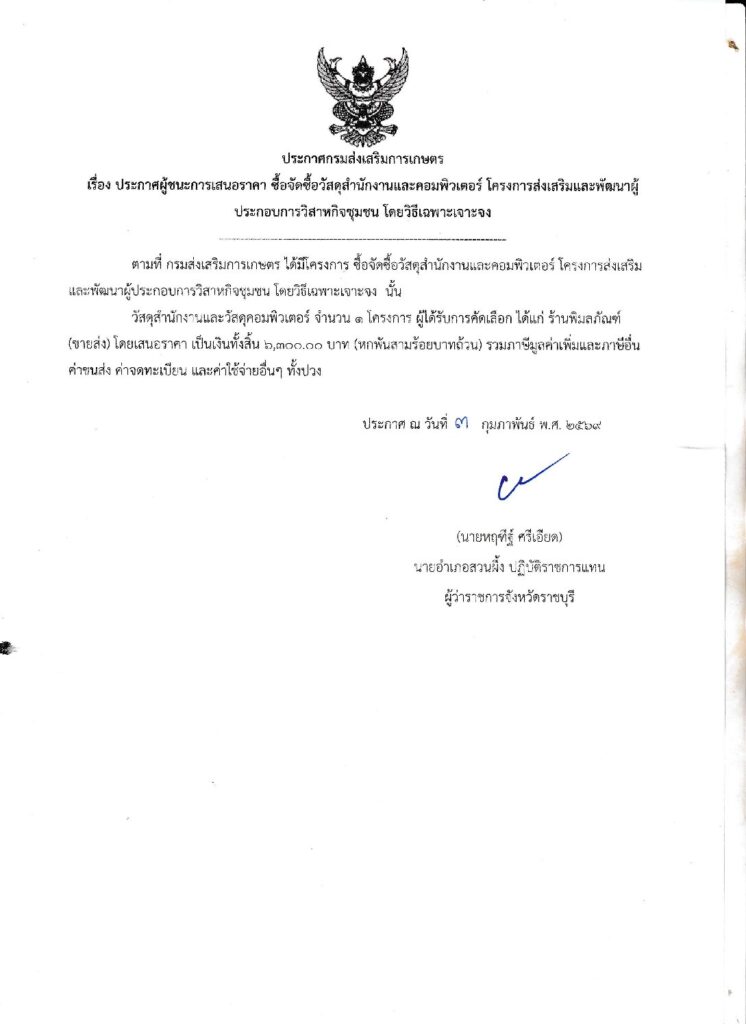 ประกาศผู้ชนะการเสนอราคา จัดซื้อวัสดุสำนักงานและคอมพิวเตอร์ โครงการส่งเสริมและพัฒนาผู้ประกอบการวิสาหกิจชุมชน โดยวิธีเฉพาะเจาะจงBy adminsuanphueng / 12 กุมภาพันธ์ 2026