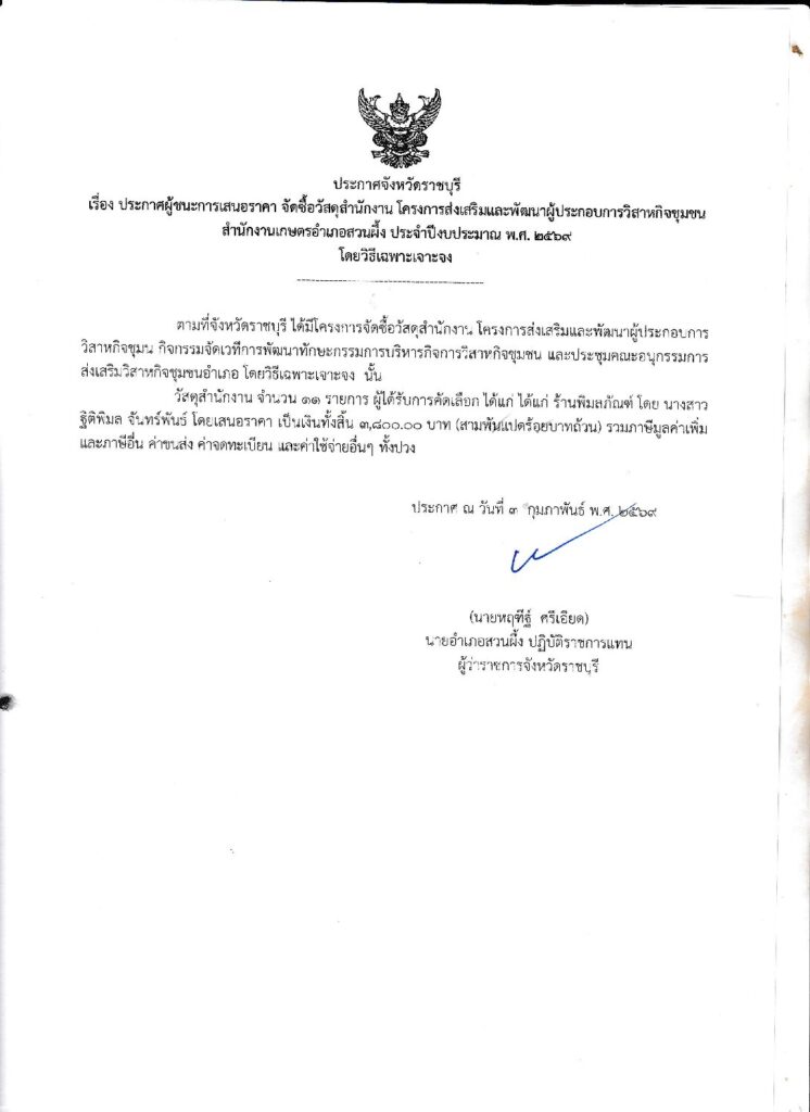 ประกาศผู้ชนะการเสนอราคาจัดซื้อวัสดุสำนักงาน โครงการส่งเสริมและพัฒนาผู้ประกอบการวิสาหกิจชุมชนBy adminsuanphueng / 24 กุมภาพันธ์ 2026